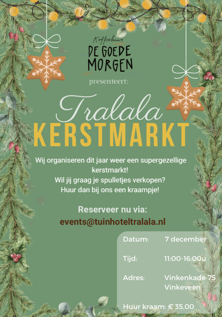 Op zondag 7 december is er bij Koffiehuis de Goede Morgen een geweldige Tralala Kerstmarkt!